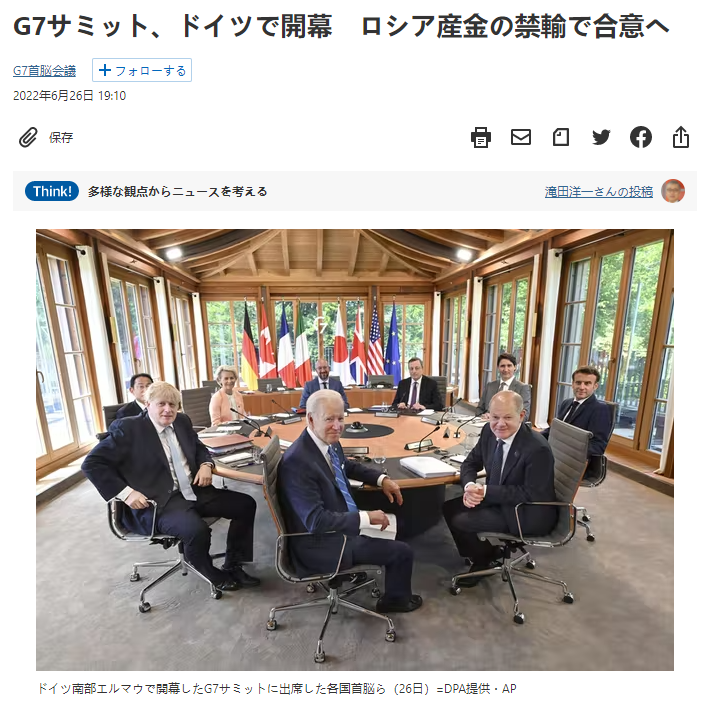 七國集團(G7)峯會於26日至28日在德國巴伐利亞州舉行。外媒近日陸續放出七國領導人的會議合照,有網友發現包括美英德法等國部分外媒報道的合照中,日本首相岸田文雄或者部分臉被擋住,或者直接就看不見。甚至部分日媒也跟着使用了類似的合照。