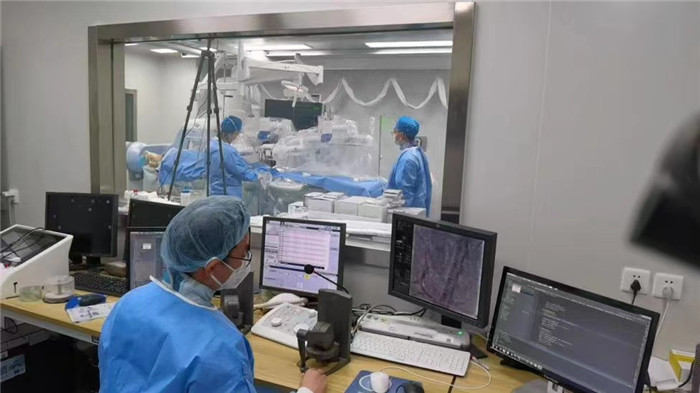 此次試驗的腦電極植入術,由河北工業大學張建華教授科研團隊研發的介入機器人輔助完成。該機器人採用主從操作方式,由宣武醫院神經外科馬永傑主任醫師在主端操作,成功完成了部分血管造影。試驗最終在羊腦血管內完成了傳感器植入,併成功採集到了腦電信號。