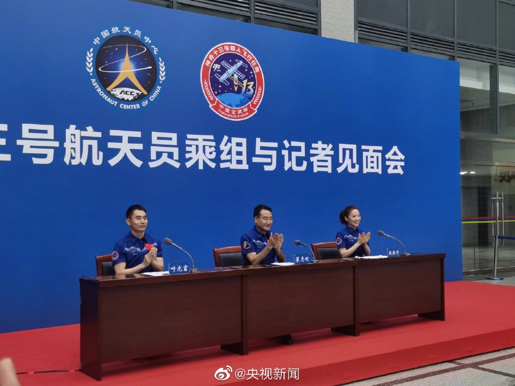 2022年6月28日下午,神舟十三號航天員乘組翟志剛、王亞平、葉光富返回74天后,在北京航天城與媒體記者見面。這是神舟十三號航天員乘組返回後首次與媒體和公眾正式見面。
