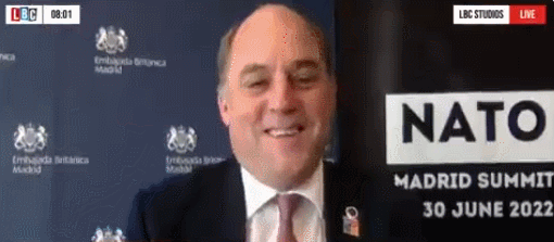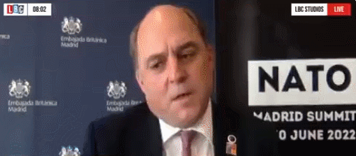 據英國《衞報》報道,當地時間6月29日上午,英國國防大臣本·華萊士在接受倫敦廣播公司(LBC)連線採訪時,被問及是否同意約翰遜“如果普京是個女人,俄烏就不會開戰”的言論時,華萊士沒忍住大笑了起來,放棄表情管理,笑了好一會才回答。