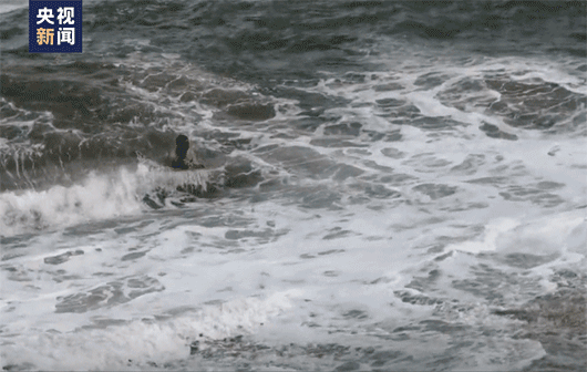拽住孩子後,他將孩子托起,並向岸邊游去,但數米高的海浪一個接一個,很快將兩人衝散,他也因此倒下。