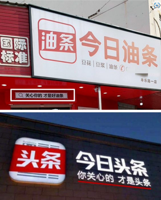 北京市中聞律師事務所合夥人趙虎當時則在社交平台上表示,“今日油條不構成侵權”。他認為,從戲仿商標的角度考慮,今日油條的確搭了今日頭條的便車,不過這個便車搭的非常好,不損人還利己,沒有必要禁止這種情況。