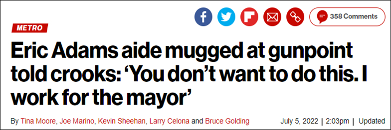 《紐約郵報》:埃裏克·亞當斯的助手在槍口下對歹徒説:“你們不會想這麼做的。我為市長工作。”