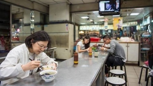 就在這時,海外社媒推特、臉書乃至大陸的微博,最近又開始熱傳一張快要“包漿”了的7年前老照片——台灣地區領導人蔡英文獨自在小吃店吃麪,配圖文案都是清一色地讚揚她“親民”。