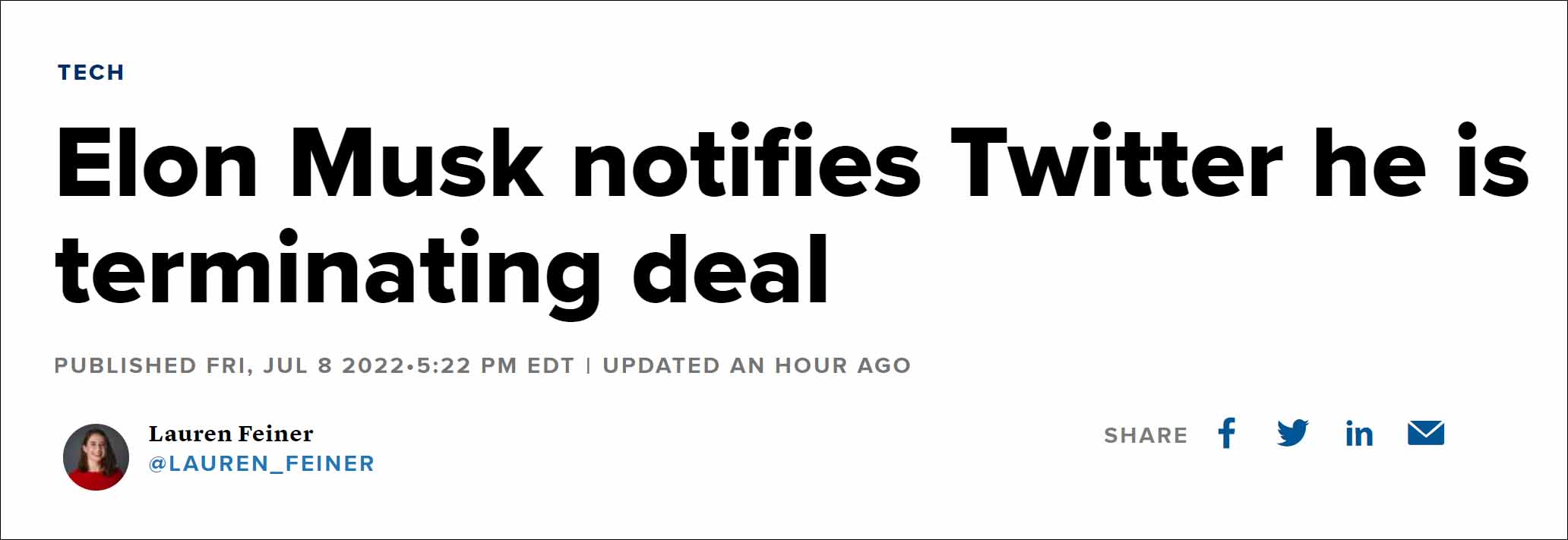 (觀察者網訊)當地時間7月8日,特斯拉首席執行官馬斯克表示,將終止對推特的收購。