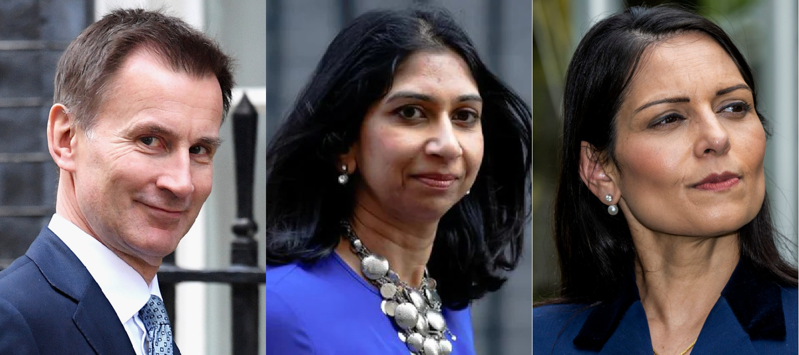 傑里米·亨特(左)、蘇拉·佈雷弗曼(中)、普里蒂·帕特爾(右)