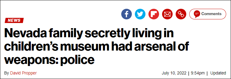 美國《紐約郵報》:內華達州一家庭秘密居住在兒童博物館,還擁有武器庫