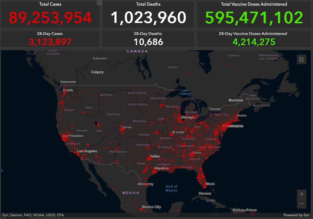 (觀察者網訊)根據美國約翰斯·霍普金斯大學統計數據,截至北京時間7月15日6時21分,美國新冠肺炎累計感染病例達到89253954例,累計死亡病例達到1023960例。在過去約24小時內,美國新增感染病例132785例,新增死亡病例1289例。