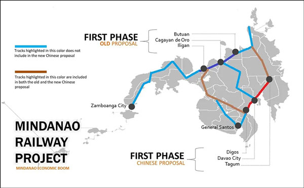 棉蘭老島鐵路總長度達到了1532公里,將直接連通達沃省、桑托斯將軍城等區域。該項目的第一階段,達沃—迪戈斯(Tagum-Davao-Digos)部分,鐵路線長達102公里。