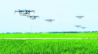 走進黑龍江省虎林市八五六農場第六管理區,一行行綠油油、齊整整的水稻長勢喜人,空中噴灑肥料的無人機輕輕掠過,稻田裏碧波盪漾。