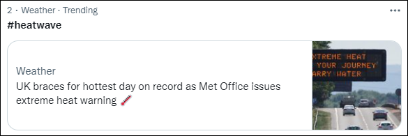而隨着高温天氣的持續,“熱浪(heatwave)”詞條也衝上英國推特熱搜榜。