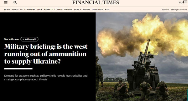 上週,《金融時報》在11日發佈的一篇題為“軍事簡報:西方正在耗盡供應烏克蘭的彈藥?”的文章中,西方國防儲備的匱乏一事已經引起討論。