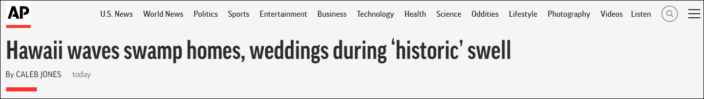根據美國國家氣象局的數據,16日,整個夏威夷島的許多朝南海岸都出現了“歷史性”的海浪狀況,導致當地幾棟建築受損,道路被關閉。