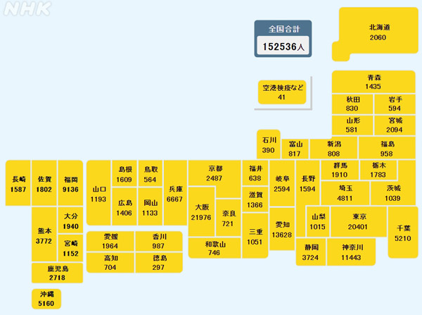 (觀察者網訊)據“日本放送協會”(NHK)20日消息,日本今日全國新增新冠感染人數高達15萬2535人,超過了當月16日的11萬多人,創下了當前日增數量的最高紀錄。