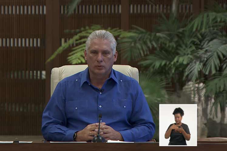 古巴國家主席迪亞斯-卡內爾則第一時間前往事發地與民眾交流,並發表全國講話。他表示,古巴是一項“非傳統戰爭策略”的受害者,這種策略目的就在於分裂古巴民眾、政府和共產黨之間的團結。他強調,古巴目前存在問題的主要原因是美國方面持續的經濟、商業和金融封鎖。
