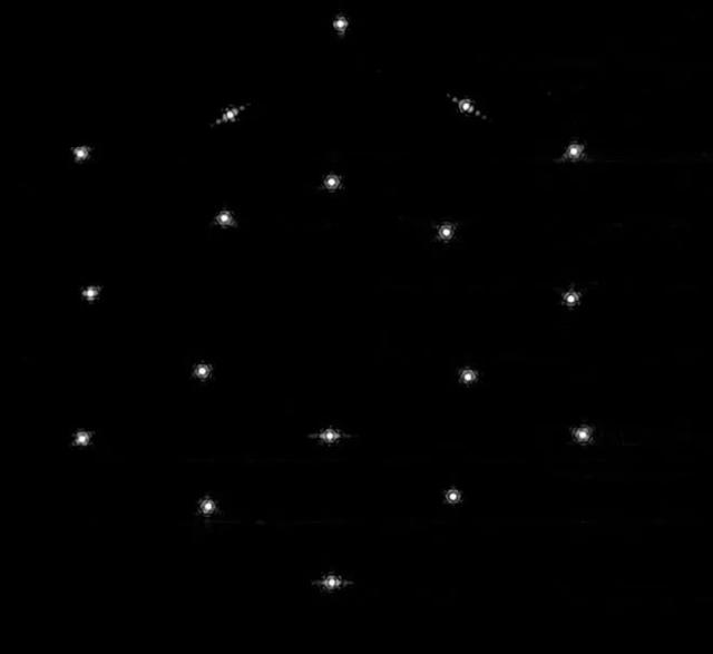 校準階段,18面鏡子對同一恆星的成像,圖片來源:NASA