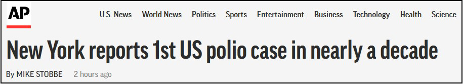美國紐約報告近十年來美國首例小兒麻痹症病例