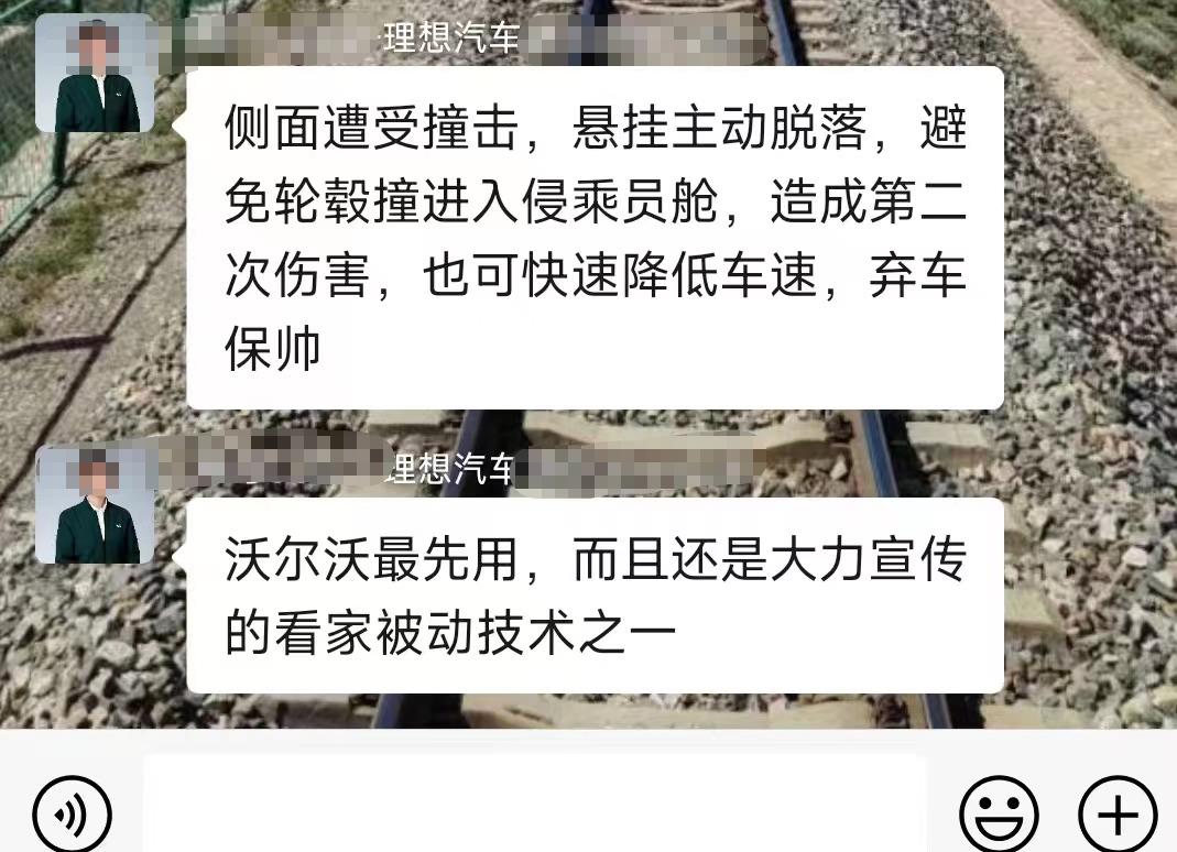 事件發生後,有理想汽車銷售人員在理想意向車主羣內解釋,“側面遭受撞擊,懸掛主動脱落,避免輪轂撞進入侵乘員艙,造成第二次傷害,也可以快速降低車速,棄車保帥。”