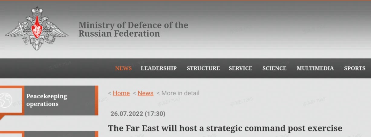 (觀察者網訊)當地時間7月26日,俄羅斯國防部發布通告,表示將在其東部戰區舉行一年一度的軍事演習“東方-2022”,演習將於8月30日至9月5日舉行。除了俄羅斯東部軍區部隊外,俄空降兵部隊、遠程航空部隊和部分其他國家軍人將參加本次演習。