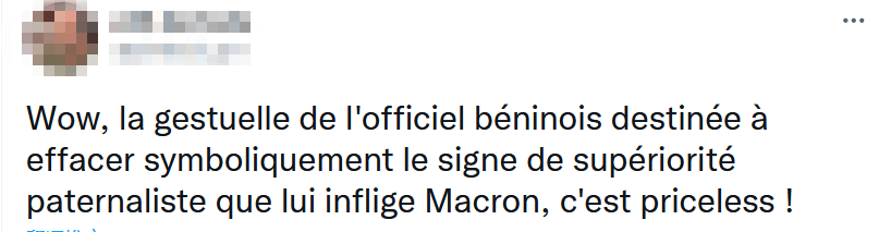 “馬克龍在貝寧收穫了深刻的教訓,即今天的非洲領導人是自由的。法國在非洲的家長式作風結束了。”