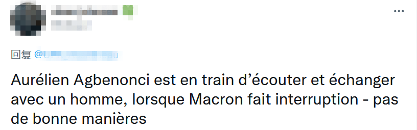 “阿貝農西正在聽別人説話的時候馬克龍打斷了他倆——沒禮貌。”