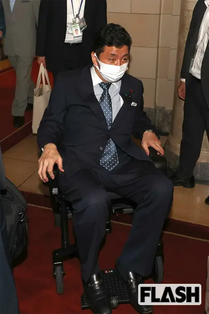 今年5月31日,岸信夫坐輪椅出席參議院全體會議。圖片來源:日本Flash雜誌