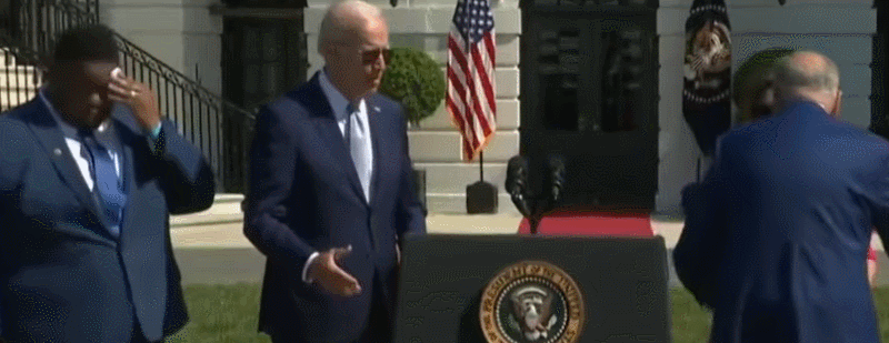 根據網上流傳的現場視頻,當時參議院多數黨領袖查克·舒默在玫瑰園台上講話,身後站着美國總統拜登、眾議院議長佩洛西及商務部長雷蒙多等。