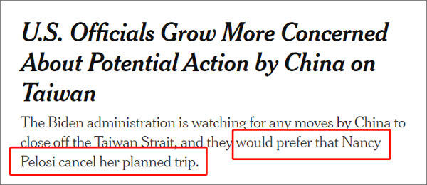 在佩洛西竄訪台灣前,拜登就曾在20日表示“軍方不認為(佩洛西訪台)是一個好主意”。白宮國安顧問沙利文(Jake Sullivan)也公開反對佩洛西的計劃,稱這會讓台海局勢更加緊張。《紐約時報》7月25日援引美官員消息稱,拜登政府對於中方的涉台表態及行動愈發擔心,透露白宮曾“悄悄勸説”佩洛西取消訪台的計劃。