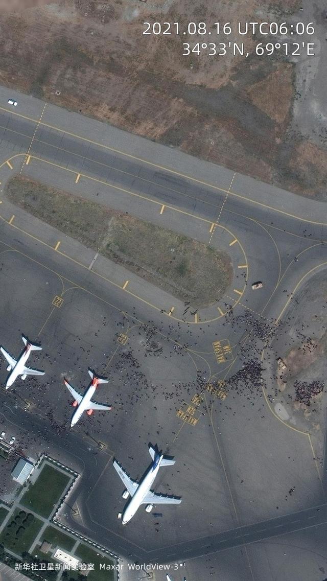 喀布爾國際機場,等待撤離的人羣湧入停機坪。