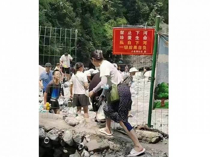 儘管龍門山鎮已多次發出倡議禁止下河、禁止“野泳”,設置警示標誌等,前往網紅打卡地的遊客仍絡繹不絕。在本次龍漕溝突發山洪當天,據時代財經13日報道,現場雖有“禁止下河”標識,但仍有很多人下水玩耍。一名遇到山洪的遊客表示,“路上有標識説禁止下河,但是又沒人管,很多人往裏面下(水)。我們是看到有那麼多人都下河了,所以我們也就下河了。”