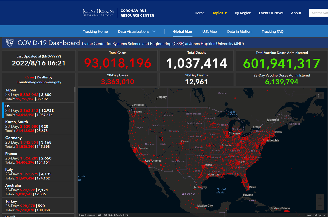 (觀察者網訊)根據美國約翰斯·霍普金斯大學統計數據,截至北京時間8月16日6時21分,美國新冠肺炎累計感染病例達到93018196例,累計死亡病例達到1037414例。在過去約24小時內,美國新增感染病例91101例,新增死亡病例393例。