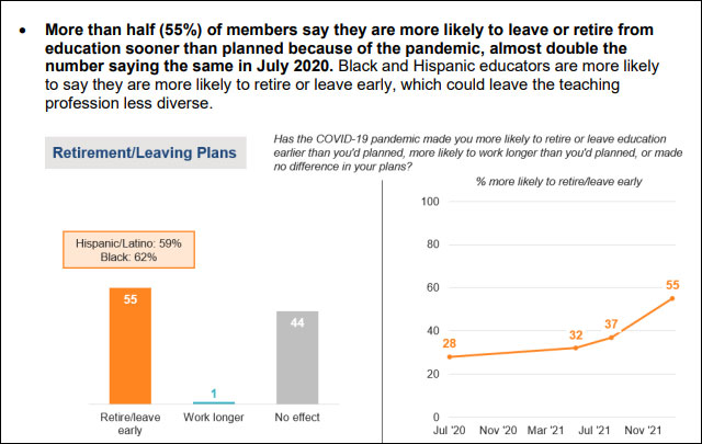 55%的教育工作者比預期更早退出教育行業,同時教師種族多元化也在下降。圖自美國國家教育協會