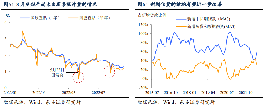本次政策推出的時點和523會議“異曲同工”,我們預計8、9月的信貸可能會類似5、6月,出現比較明顯的反彈,信貸結構也會出現優化,例如票據融資和政府融資佔比的下降。在經濟方面,由於824會議更加註重政策落地(即時派出督導組),我們有望在第三季度末就看到基建的繼續發力和地產銷售的好轉。