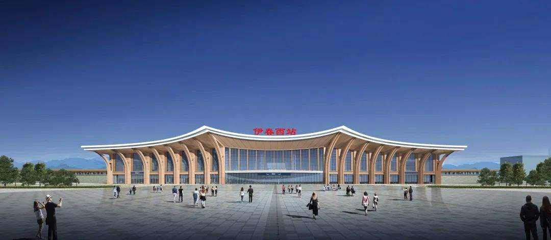 新建伊春西站位於伊春市烏翠區伊春電廠南側,站房設於線路南側,距離城市主幹道林都大街南側約1公里,站房總建築面積約19985平方米,為全線最大站房,採用線側下式站型,可容納1500名旅客同時候車。站場設2站台4線,站房為地上3層地下局部1層結構。鐵路部門充分考慮到本線功能定位,結合車站佈置情況,採用“三段式”站房平面佈置形式,配備了先進完善的服務設施,站房中部為進站、候車廳,右側設置售票區域,左側設置出站廳。