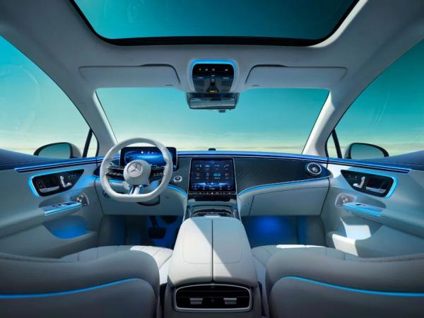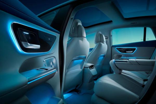 對於“先鋒豪華”的詮釋,奔馳更注重於細節之處顯真章。全新EQE前臉以暗夜星陣封閉式前格柵搭配智能數字大燈,與車尾的3D螺旋式尾燈相呼應。進入內部,全新EQE除採用Nappa皮飾、胡桃木星徽飾板、柏林之聲環繞立體聲等標誌性的配置外,新車也是最早搭載主動式環境氛圍燈的梅賽德斯-EQ車型,並可通過OTA遠程升級解鎖“光影世界-電光石火” 數字大燈投影主題。而在未來的車型上,還將搭載杜比全景聲和6號甘苦香專屬香氛等新穎特徵。