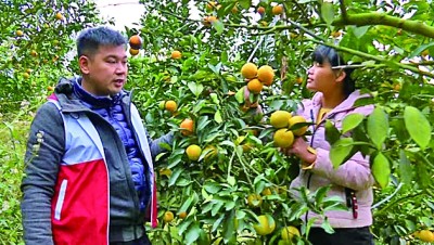 林舒進(左)同石茅村柑橘果農交流。 受訪者供圖