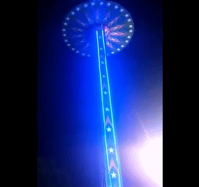 然而在當晚,一個坐滿遊客的旋轉塔突然出現故障。現場視頻顯示,這個旋轉塔先是慢慢旋轉上升,然後在高處停了下來,繼續旋轉了一段時間。但之後,旋轉塔並未緩慢下降,而是從50英尺(15.24 米)的高空直直墜落,重重砸到地面,發出一聲巨響。