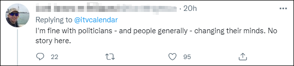 “我對政客們——以及一般人——改變他們的想法沒有意見。這裏沒有故事。 ”