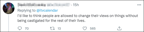 不過,也有人提出反對意見為特拉斯説話,表示人們可以改變對事物的看法,特拉斯不應受到譴責。