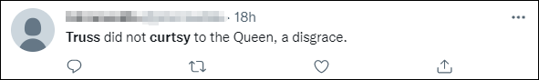在此情況下,看着特拉斯見女王時似乎只微微屈了膝,有英國網民開始不滿。