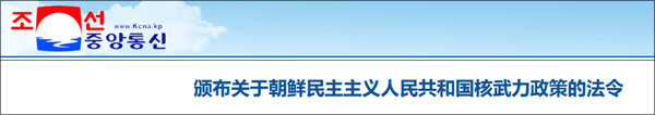 朝鮮民主主義人民共和國最高人民會議為使國家防衞力量的中樞——核武力負責任地盡到自己的重大使命,作出如下決定: