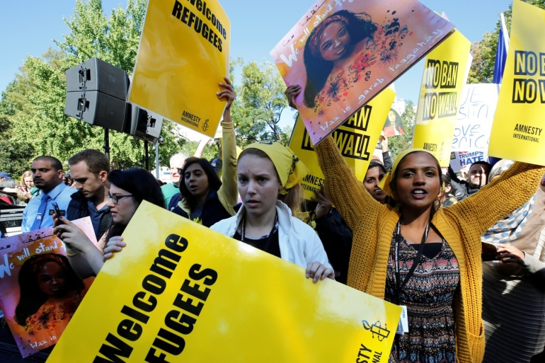 “除了不斷地從他現已被永久停用的推特賬户上轉發仇視伊斯蘭教實體的反穆斯林言論,並在競選期間表示他認為‘伊斯蘭教恨我們’,(特朗普)他還對穆斯林移民和難民做出了多種仇外的評論和政策……卻很少考慮其歧視性意圖。”