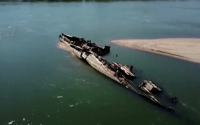 今年8月,在塞爾維亞東部,因多瑙河水位下降,沉沒的納粹德國戰艦再度露出水面(圖源:The Times of Israel)