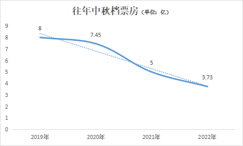 儘管今年暑期檔期間電影市場以91.35億元的成績令市場感到驚喜,卻在中秋檔啞火了。燈塔專業版數據顯示,2022年中秋檔票房為3.73億元,相較去年下滑25.4%,這也是票房連續三年出現下滑。