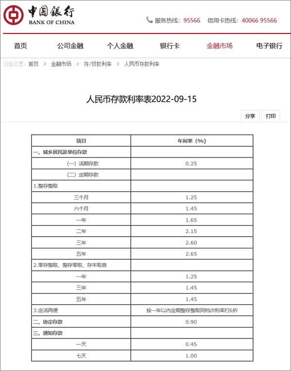 9月15日,中國銀行、中國建設銀行、中國工商銀行、中國農業銀行均發佈公告,即日起調整人民幣存款掛牌利率。定期存款整存整取三個月年利率為1.25%,六個月1.45%,一年1.65%,二年2.15%,三年2.6%,五年2.65%。零存整取、整存零取、存本取息一年利率為1.25%,三年和五年為1.45%。