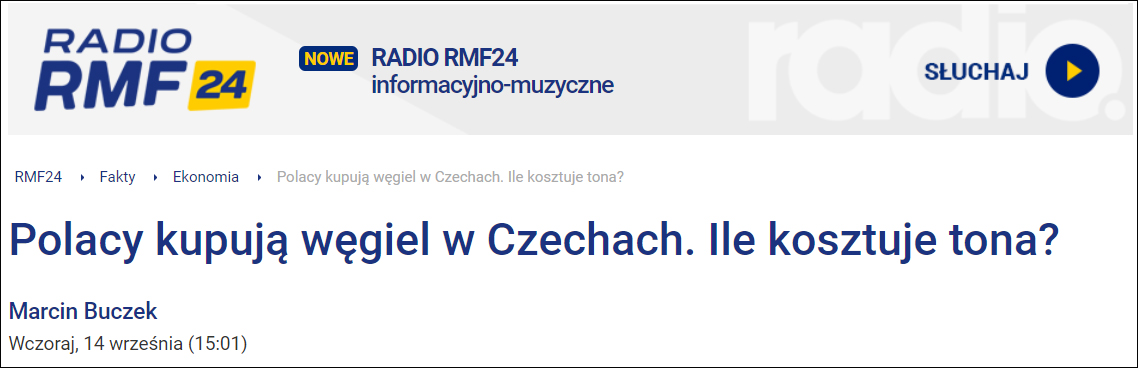 RMF 24廣播電台名為“波蘭人在捷克購買煤炭,一噸多少錢?”報道截圖