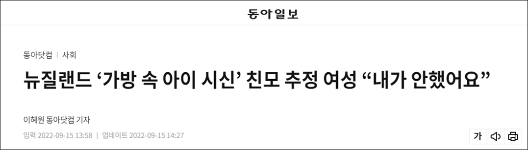 據韓國《東亞日報》9月15日報道,韓國警方稱,15日凌晨1點左右,警方在蔚山一處公寓內逮捕了42歲女子A某,A某被指控在新西蘭殺害了兩名兒童,並被認定是死者的母親。另據韓聯社15日報道,A某早年從韓國移民到新西蘭並獲得公民身份,案發後回到韓國,一直藏身至今。