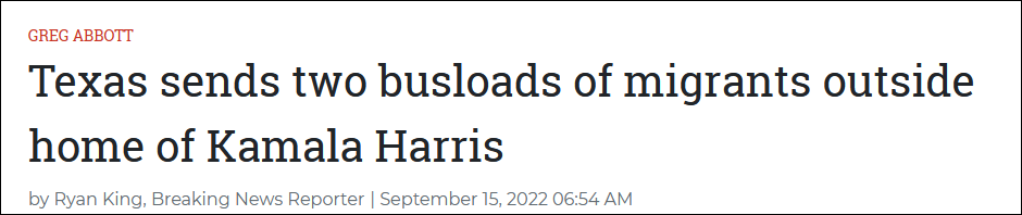 對抗拜登移民政策,得州共和黨州長把移民運到哈里斯家門外
