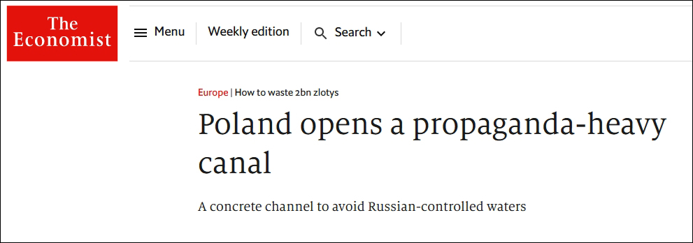 《經濟學人》稱,烏克蘭問題增加了該項目的象徵意義,但也削弱了其本已薄弱的經濟理由。在過去的幾年裏,埃爾布隆格港主要負責處理跨越維斯圖拉潟湖到加里寧格勒的貿易,但今夏出台的制裁措施目前已經叫停了與俄羅斯的泥炭和木材的運輸。即使在衝突結束後,運河賺回其成本的一小部分的機會似乎也很渺茫。