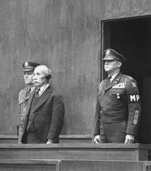 在遠東國際軍事法庭接受審判的荒木貞夫(資料圖)